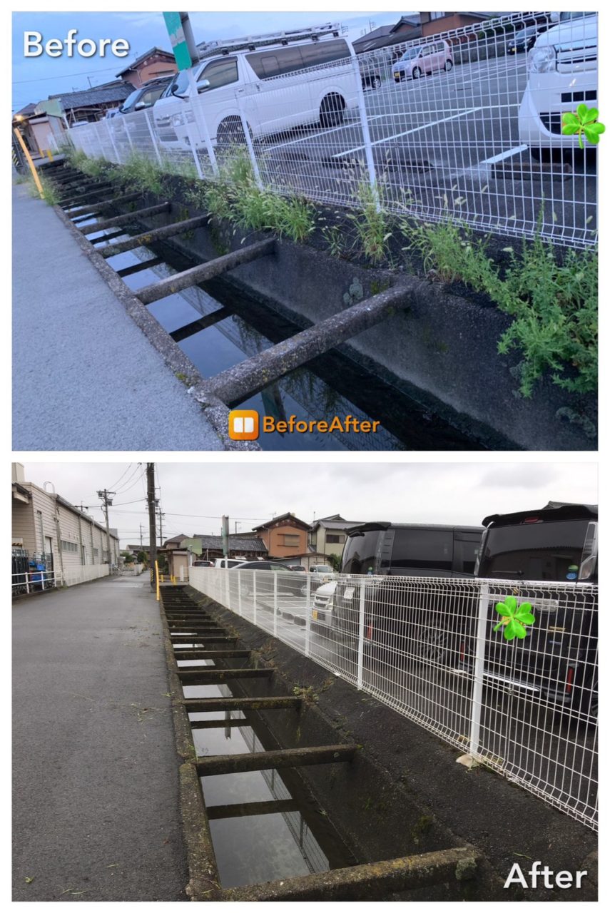 従業員駐車場に生えていた草をわたせいスタッフで綺麗に‧✧̣̥̇‧✦‧✧̣̥̇‧✦